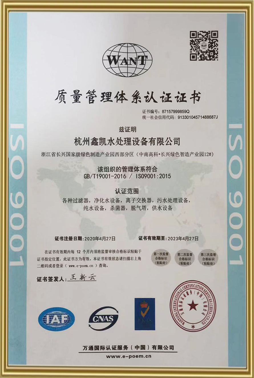 質(zhì)量管理體系認(rèn)證證書(shū)